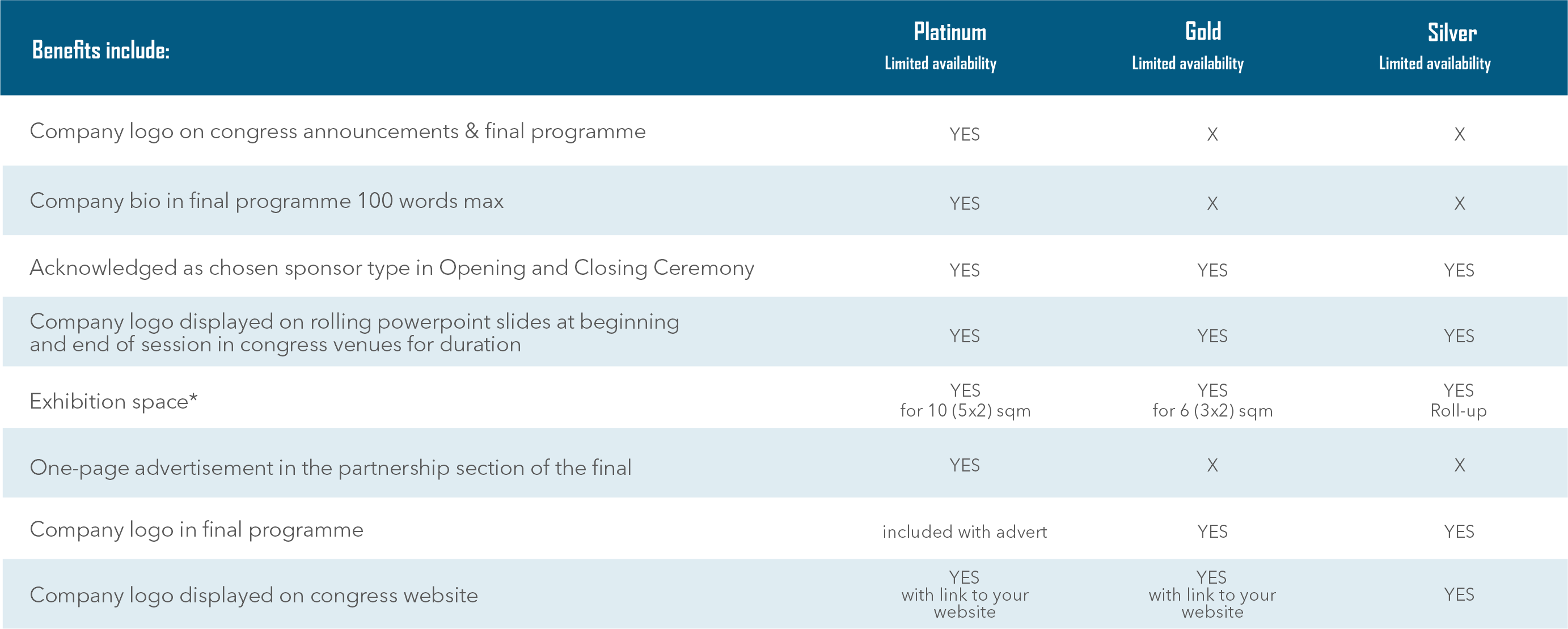 For further information and other sponsorship and partnership opportunities, please contact the Secretariat.